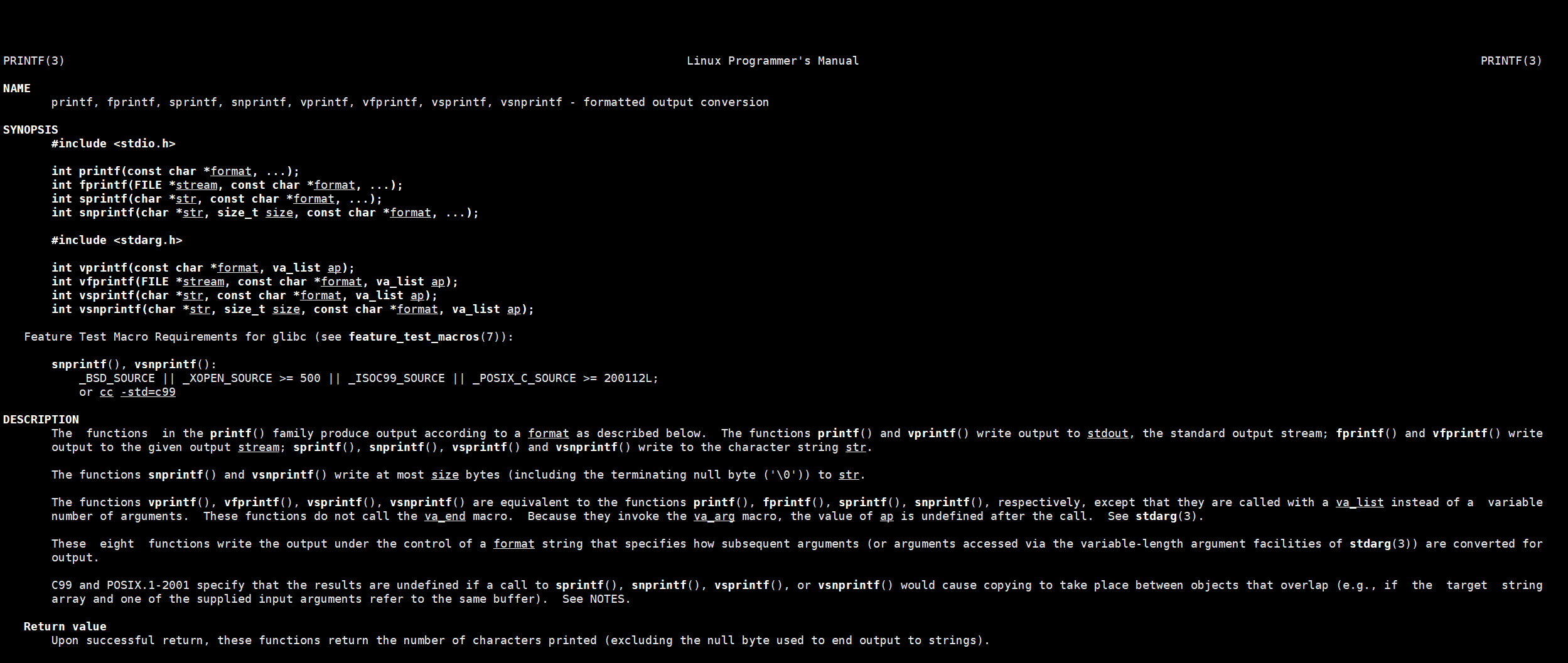man 3 printf : 意思是查C语言中的printf函数(在linux中printf也是一个命令)