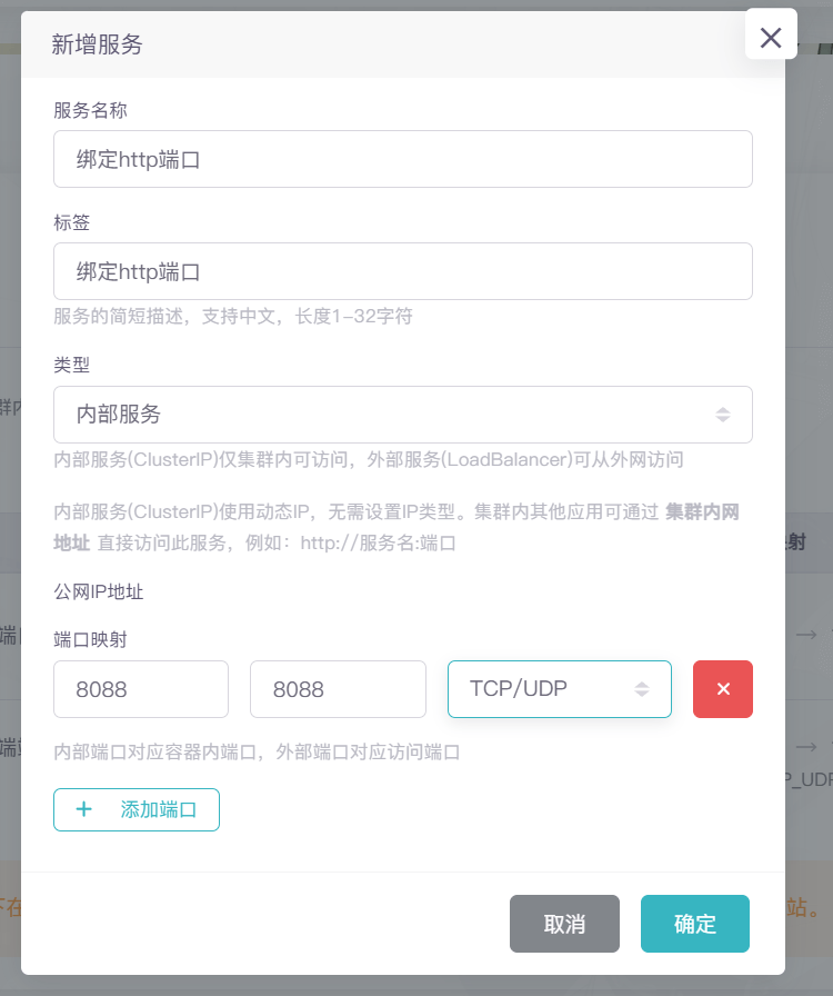 端口映射填写刚才配置文件配置的vhostHTTPPort端口,点击确定即可