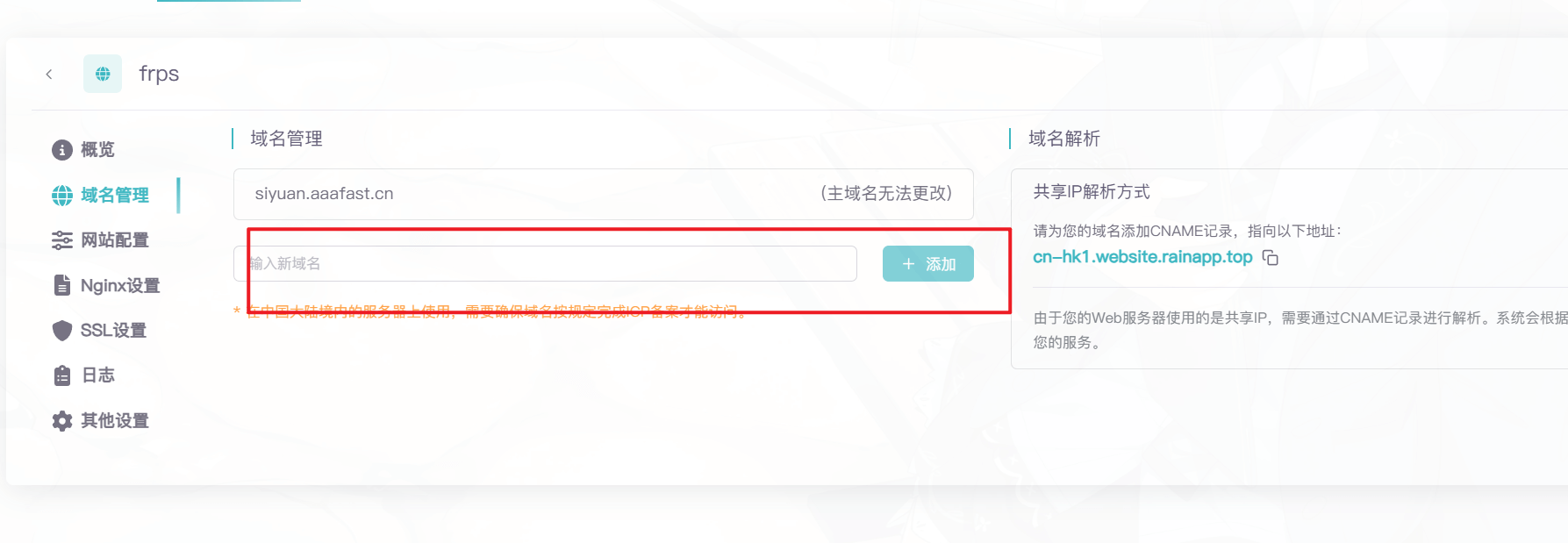 还想绑定其他域名的话同样是在域名管理里添加,记得也要添加cname解析,记录是一样的