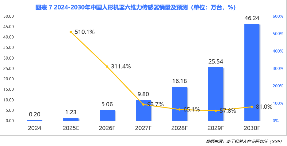 进入2025年,当人形机器人从实验室演示快步走向工厂的产线测试,一个曾隐于幕后的核心部件------六维力传感器,被骤然推至产业聚光灯下。据高工机器人产业研究所(GGII)预测,今年中国人形机器人领域六维力传感器的出货量将实现数倍级的增长。这一数据背后,不仅仅是一个细分市场的爆发,更是一场关于中国高端精密制造能力、供应链自主权以及下一代智能机器人定义权的深度竞逐。国产力量正从过去的跟跑与并跑,在部分领域尝试进入领跑区间。