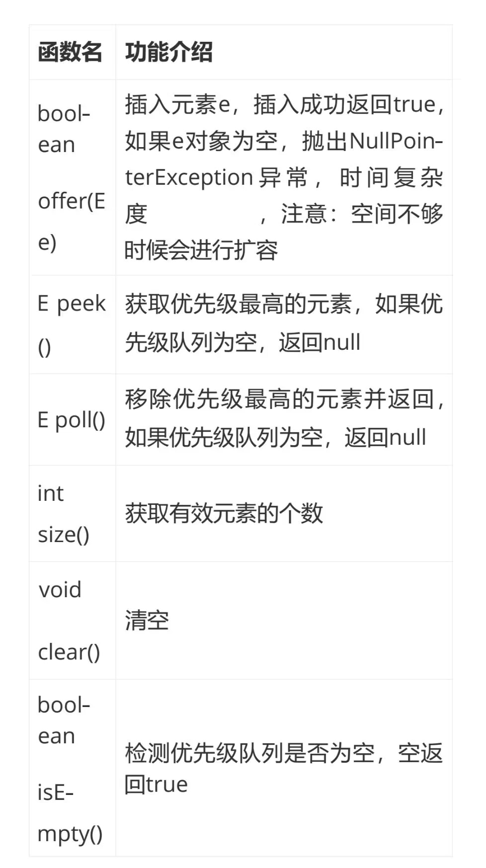 - PriorityQueue中放置的元素必须要能够比较大小,不能插入无法比较大小的对象,否则会抛出ClassCastException异常。