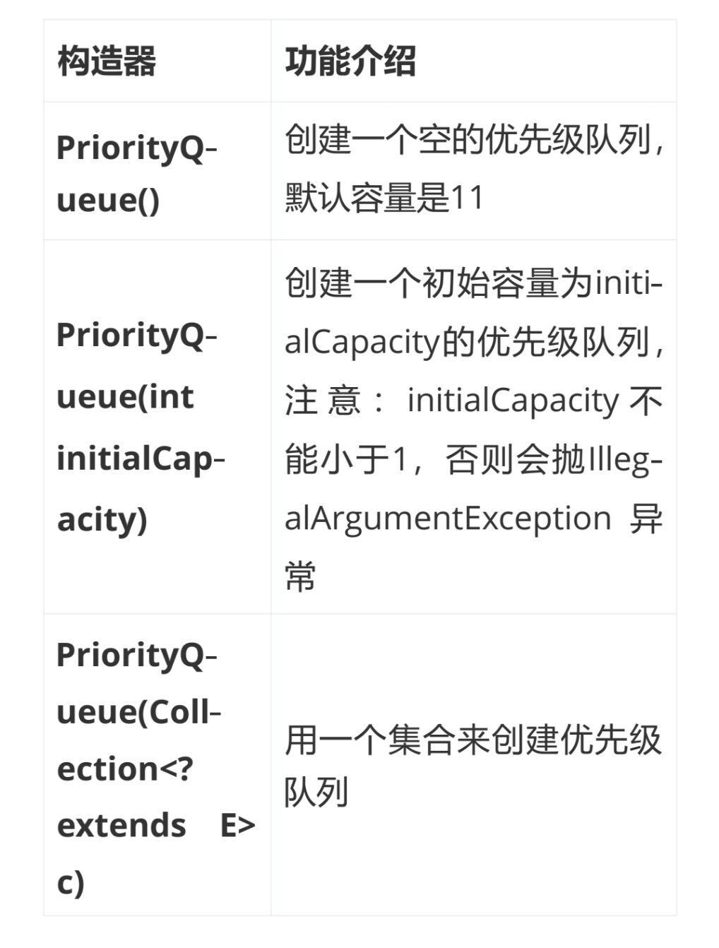 - PriorityQueue默认情况下是小根堆即每次获取到的元素都是堆中最小的元素。