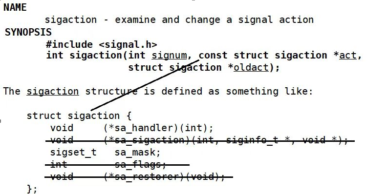 struct sigaction*oldact:用于保存原本的信号参数。