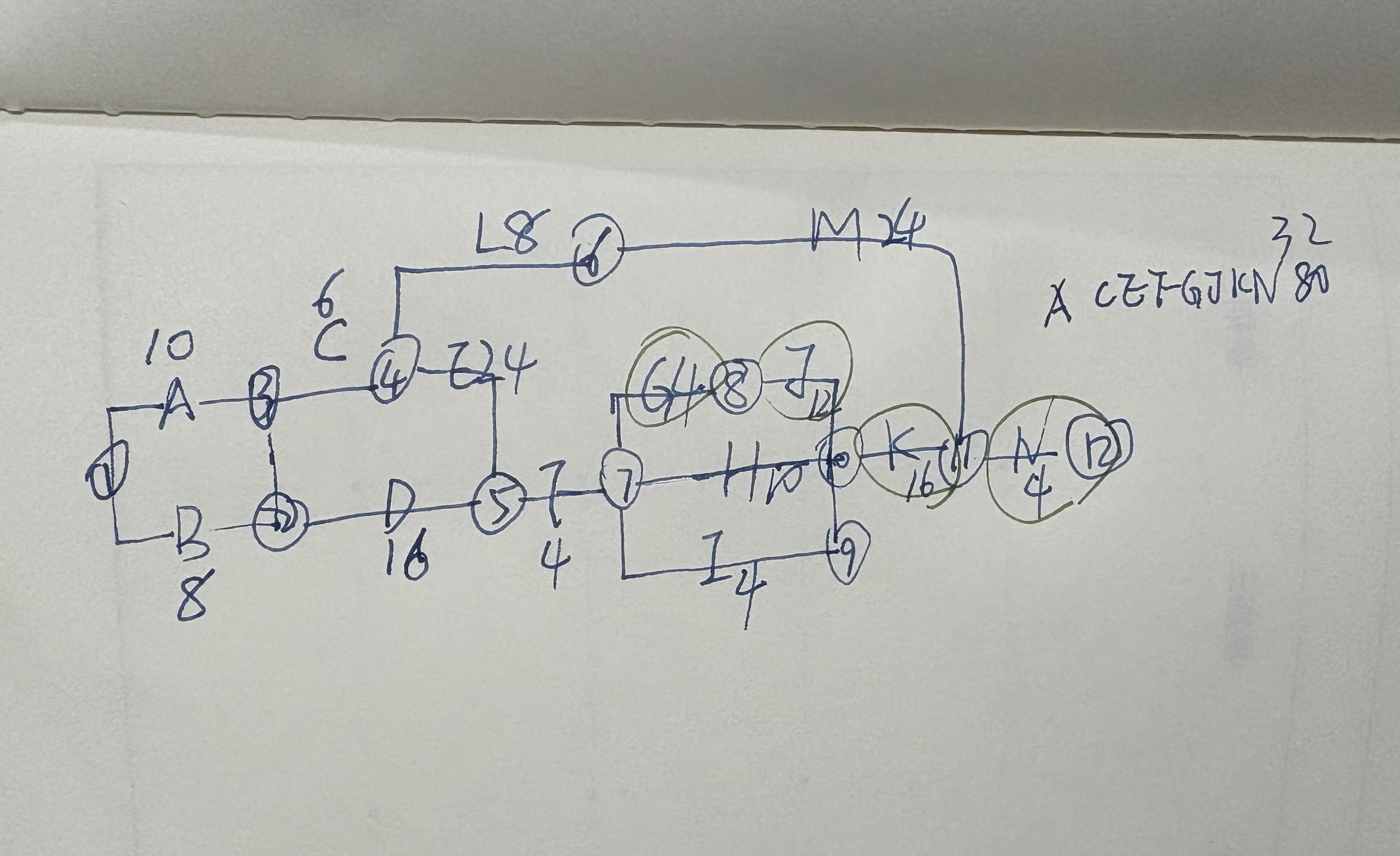 (2)关键路径为:A-C-E-F-G-J-K-N,工期为80。
