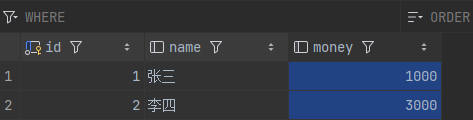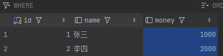 insert into account(name, money) VALUES ('张三',2000), ('李四',2000);