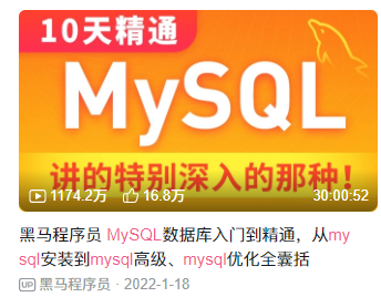 鸣谢:黑马程序员。(【黑马程序员 MySQL数据库入门到精通,从mysql安装到mysql高级、mysql优化全囊括】https://www.bilibili.com/video/BV1Kr4y1i7ru?vd_source=b7f14ba5e783353d06a99352d23ebca9)