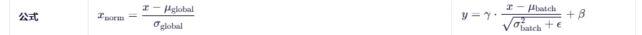 x~=x−μbatchσbatch2+ϵ,y=γ⋅x~+β \tilde{x} = \frac{x - \mu_{\text{batch}}}{\sqrt{\sigma_{\text{batch}}^2 + \epsilon}}, \quad y = \gamma \cdot \tilde{x} + \beta x~=σbatch2+ϵ x−μbatch,y=γ⋅x~+β