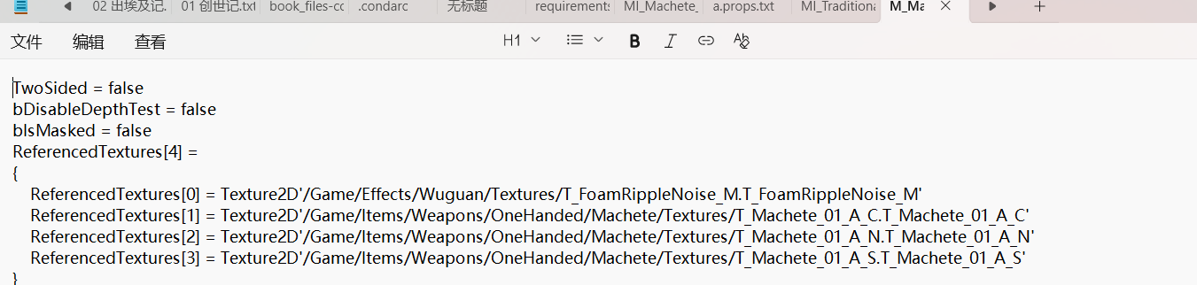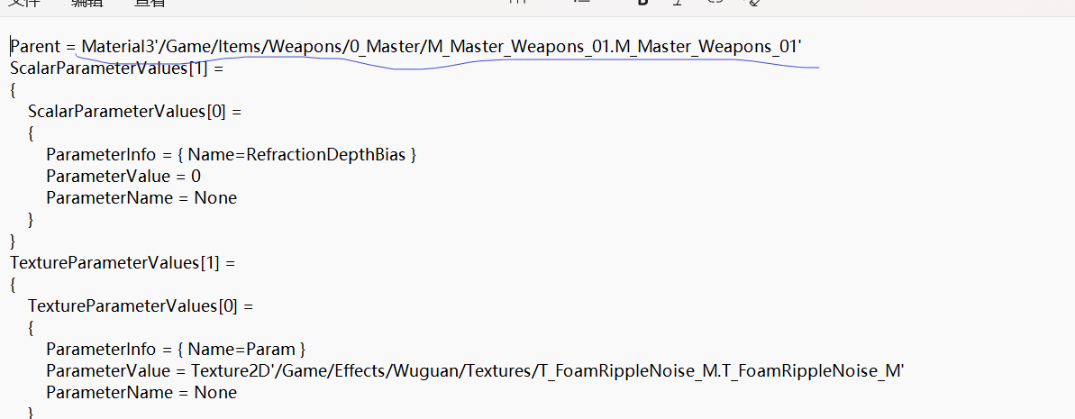 打开MI_Traditional_WoodenStick_01_A.props.txt可以看到父材质是这个