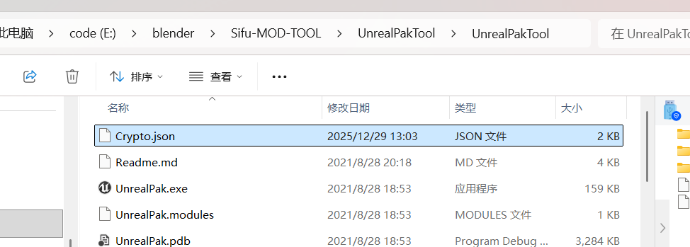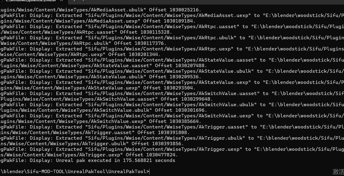 UnrealPak.exe "G:\Sifu\Sifu\Content\Paks\pakchunk0-WindowsNoEditor.pak" -extract "E:\blender\woodstick" -cryptokeys="E:\blender\Sifu-MOD-TOOL\UnrealPakTool\UnrealPakTool\Crypto.json"