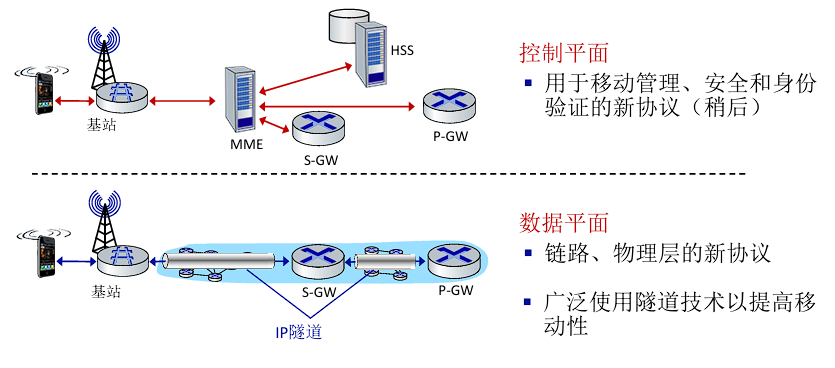 - 主要特点 :数据和控制平面分离,控制平面负责移动管理、安全和身份验证,数据平面负责数据传输。