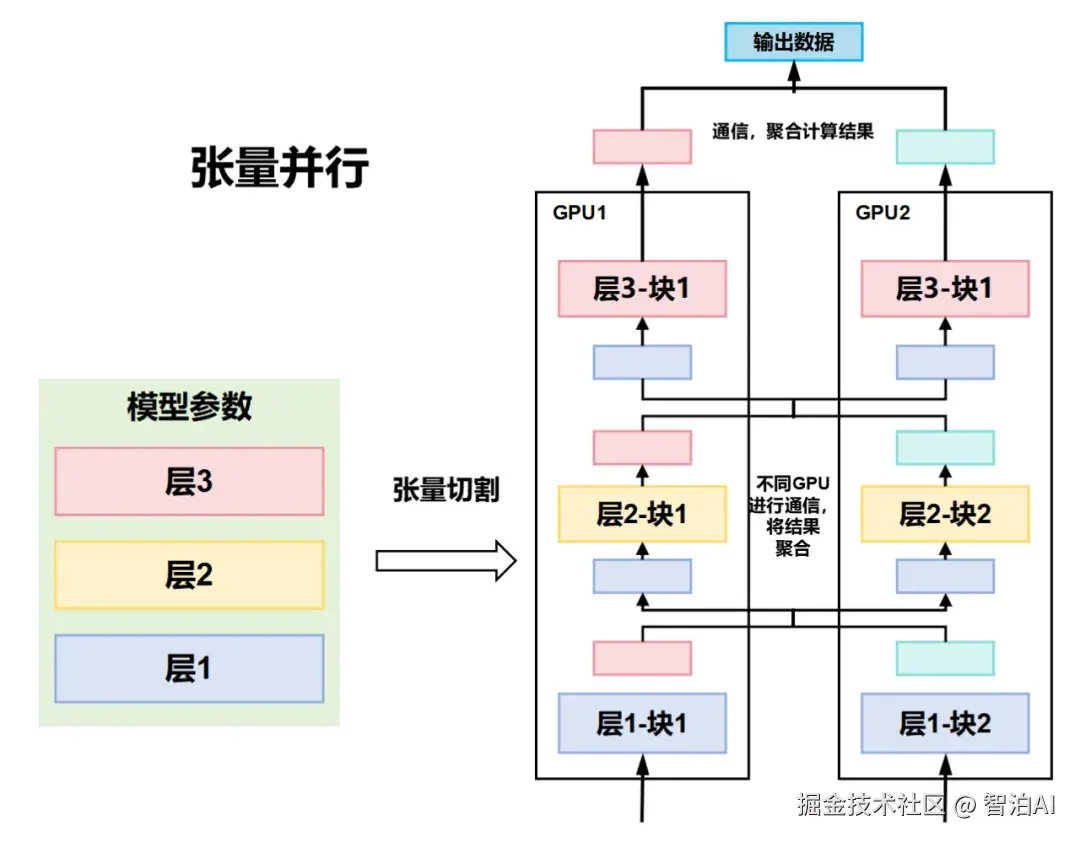 模型并行的另一种形式称为张量并行。
