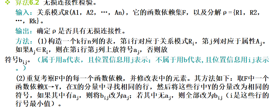 - 当分解多于两个关系时,用这个算法来判断是否为无损连接。