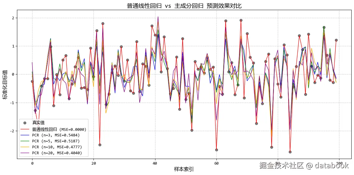 - 特征数 > 样本数 ,或特征严重共线性: 必须上正则化手段,用 岭回归、Lasso、ElasticNet,或者降维类的 PCR/PLS。
