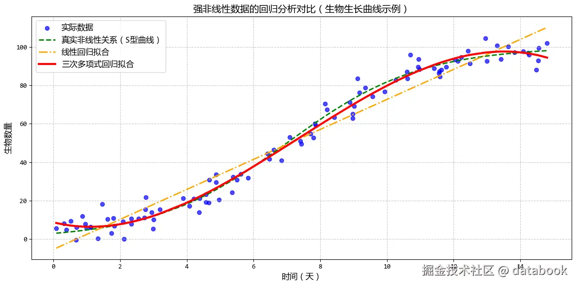 # 1. 构造强非线性测试数据(模拟生物生长曲线)