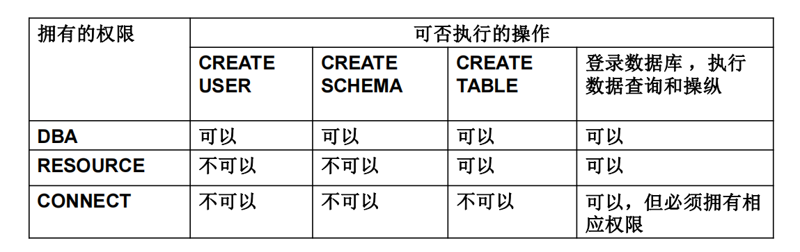 - 数据库模式中操作的权限是数据库管理员在创建用户时实现的;