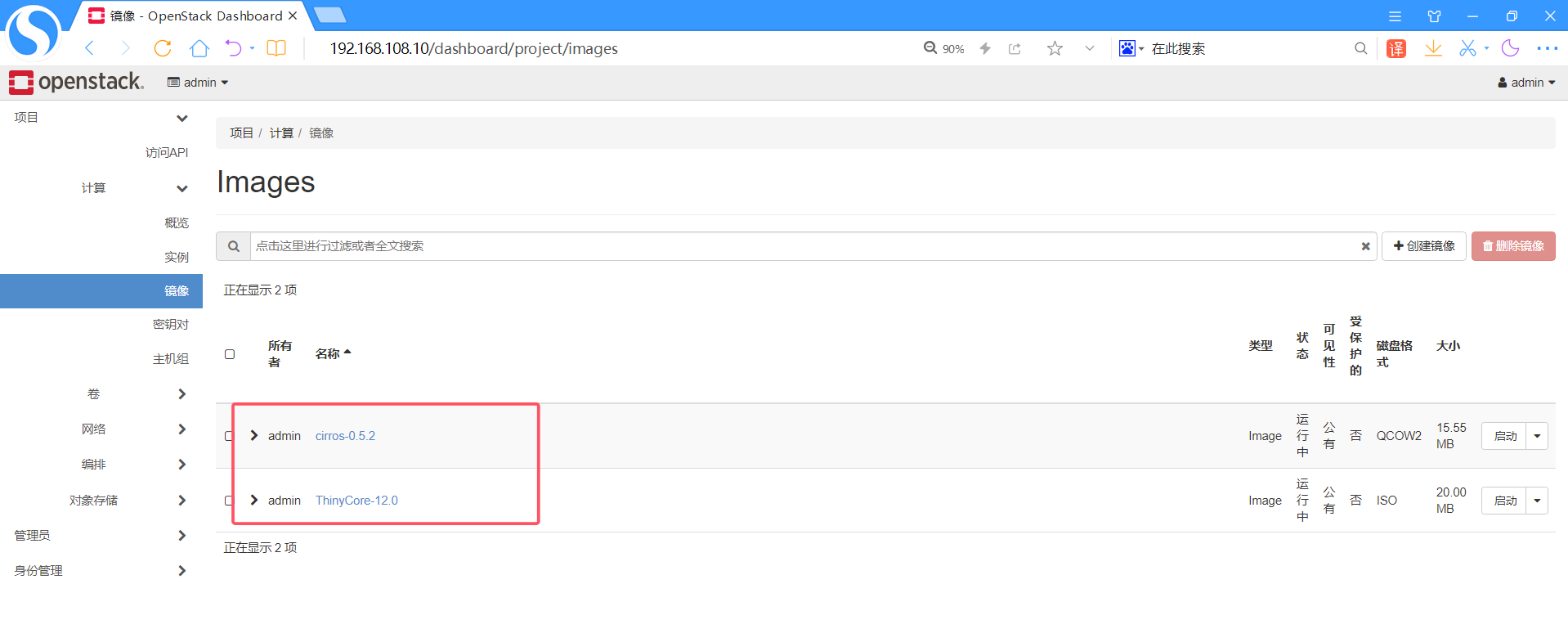 上传两个镜像文件到controller节点的/root目录: