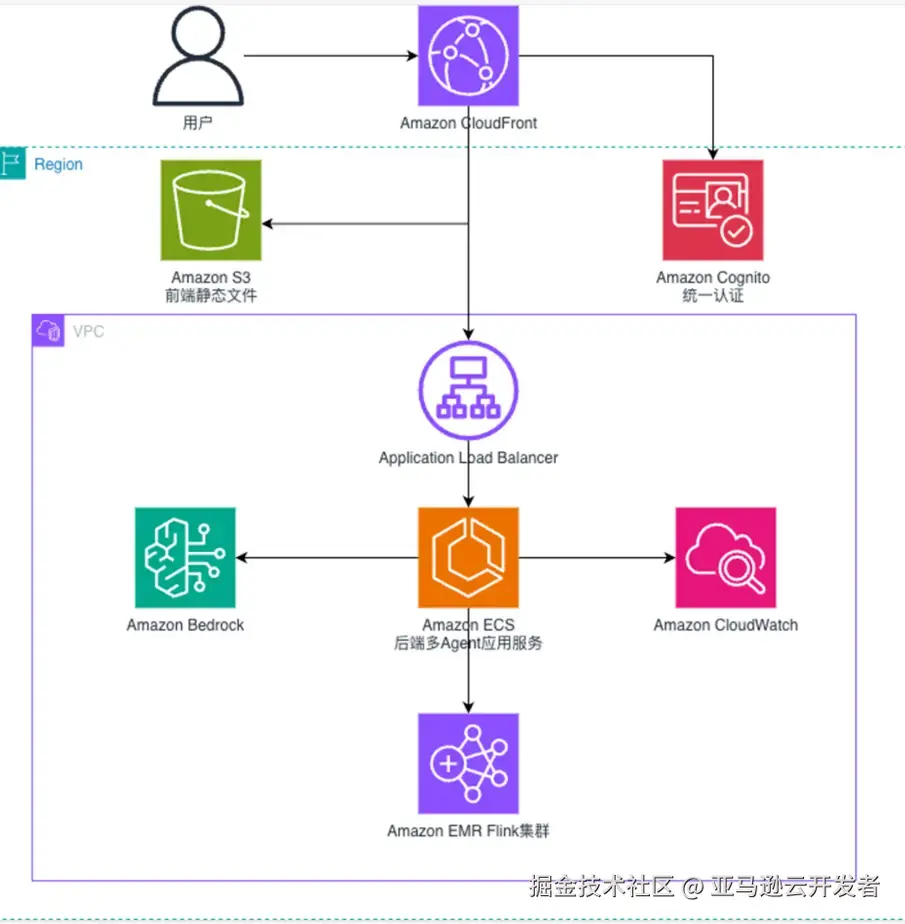 -- 后端:Application Load Balancer (ALB) + Amazon Fargate