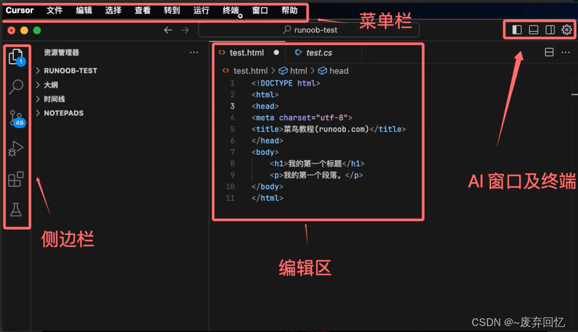 Cursor 是基于 VS Code 开发的一款编辑器,它在保留 VS Code 强大功能和熟悉操作体验的同时,专注于 集成 AI 技术,帮助开发者更高效地编写代码。