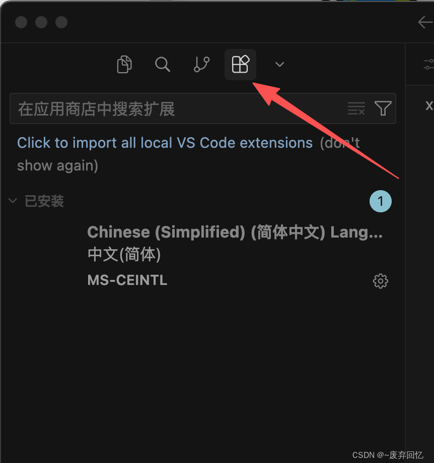 Cursor安装好以后需要在插件库里面安装"中文(简体)"的插件.具体如图所示.