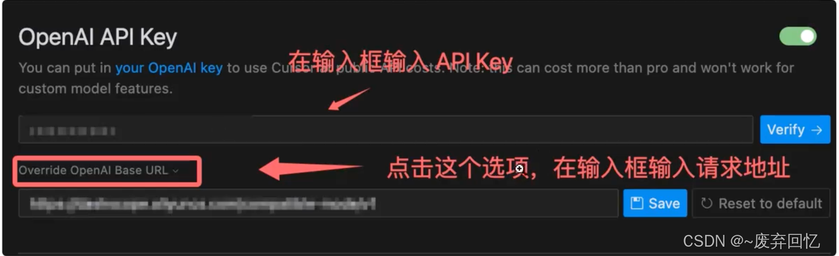 模型添加好后,我们需要设置API Key和请求地址,在下面输入框即可: