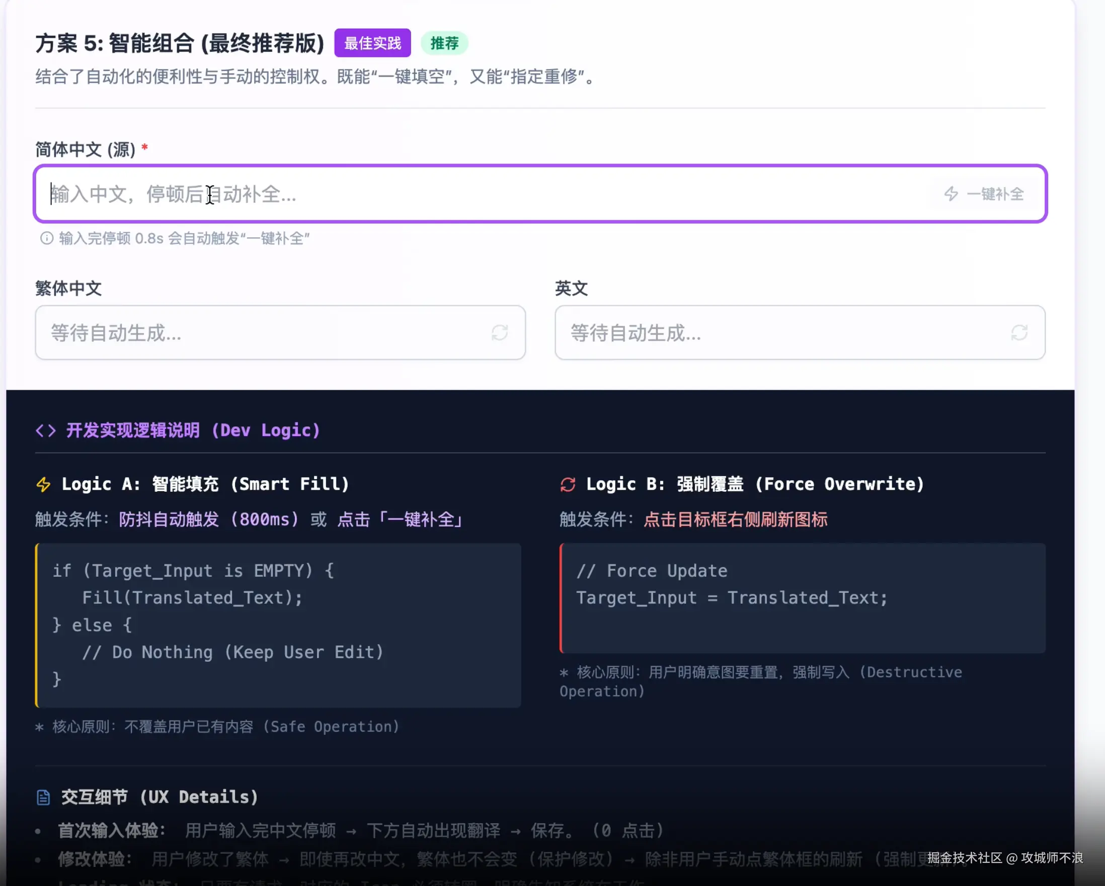 所以团队同学想提升这个组件的用户体验,让其使用起来更方便快捷,因此想做一个自动翻译的功能。
