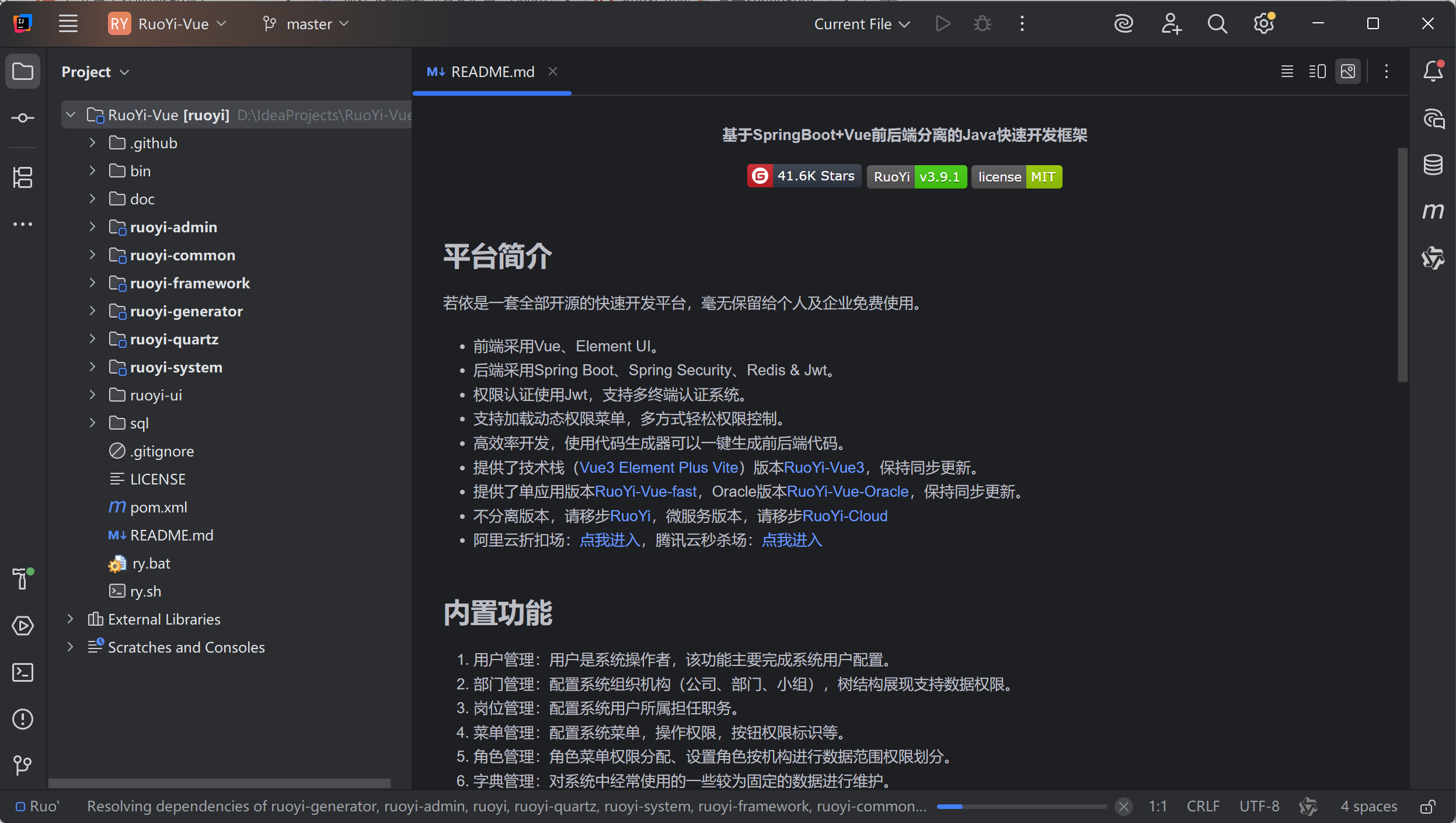 项目初始化需要一点时间,等待右下角进度条完成即可。