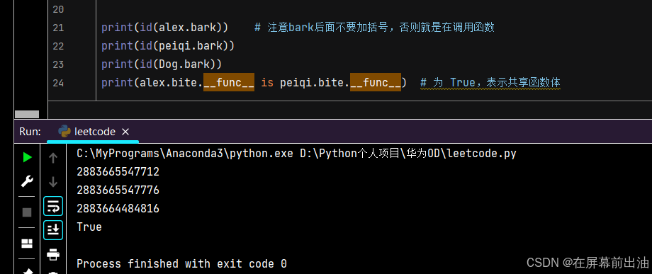 bark),每个实例访问时会生成一个临时的绑定方法对象,它们的id()可能因内存复用而偶然相同,但本质上是不同的对象。真正共享的是类中的函数定义(可通过
