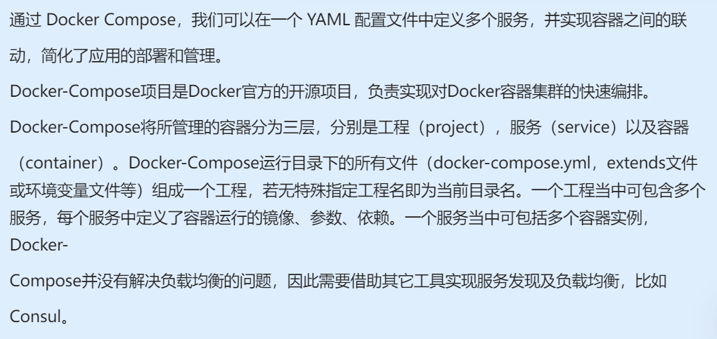 YAML(YAML Ain't Markup Language)是一种简洁的数据序列化格式,常用于配置文件。它比 JSON 更加简洁易读,并且支持更复杂的数据结构。使用 YAML 编写 Docker Compose 配置文件时,有几个注意事项: