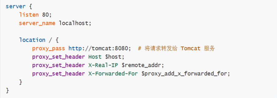 - 配置 proxy_set_header 是为了确保转发请求时,Nginx 会把客户端的 IP 和请求头传递给后端服务器。