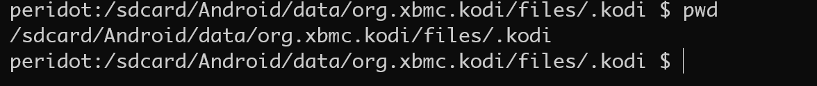 随后我们进入串口,检查文件夹路径是否符合预期 /sdcard/Android/data/org.xbmc.kodi/files/.kodi