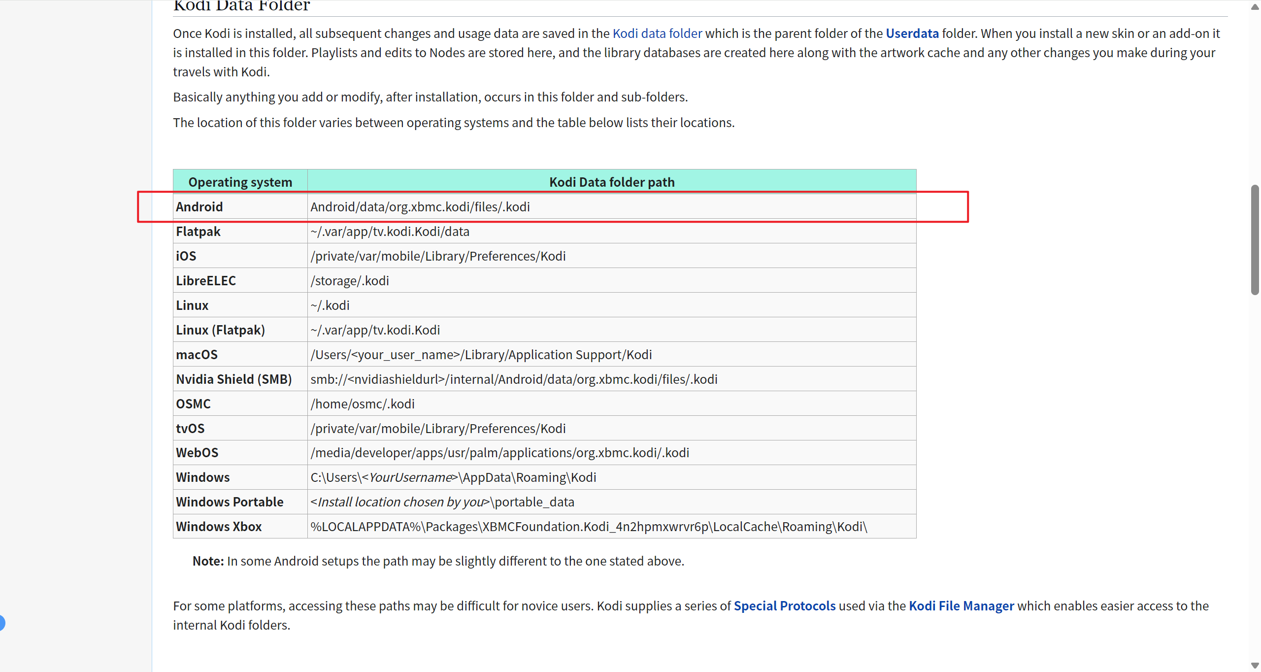 首先,查阅官方教程可以知道,Kodi 的数据是存储在 Android/data/org.xbmc.kodi/files/.kodi 目录下的: