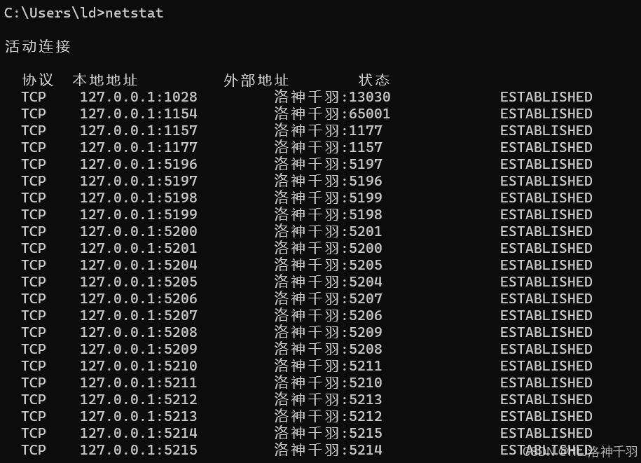 netstat --a:本选项显示一个所有的有效连接信息列表,包括已建立的连接(ESTABLISHED),也包括监听连接请求(LISTENING)的那些连接。