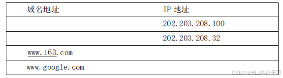 (3)用nslookup命令从域名地址当中解析出IP地址,从IP地址当中解析出域名地址。填写下表: