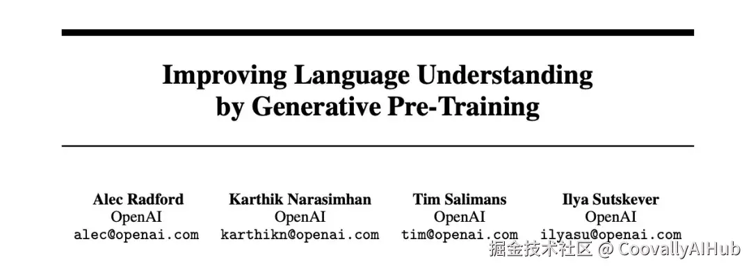 OpenAI的《Improving Language Understanding by Generative Pre-Training》(2018)开启了预训练语言模型的新时代。