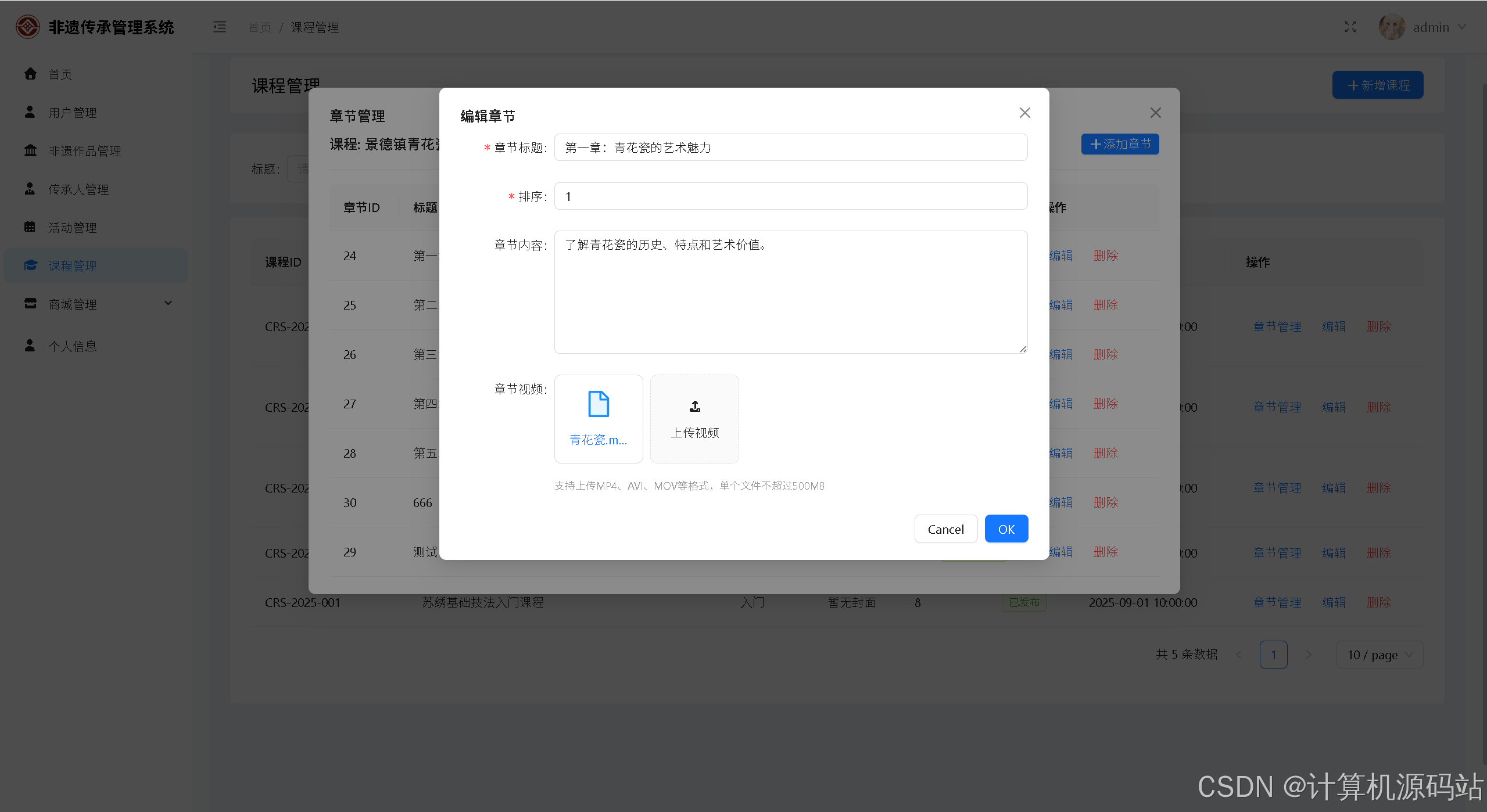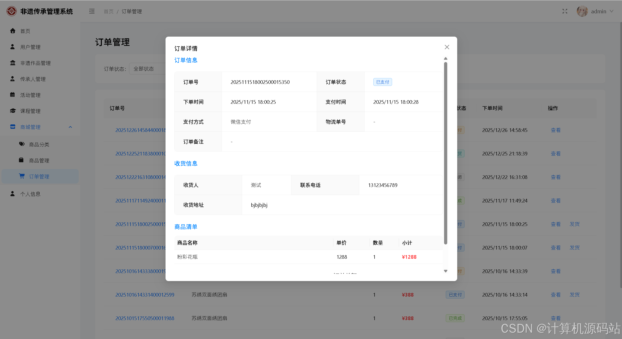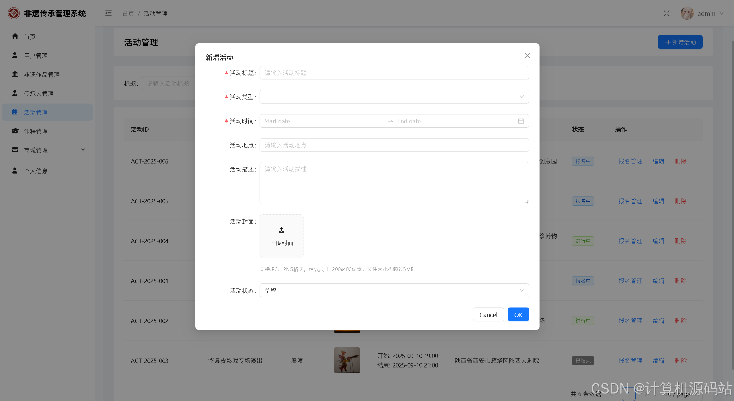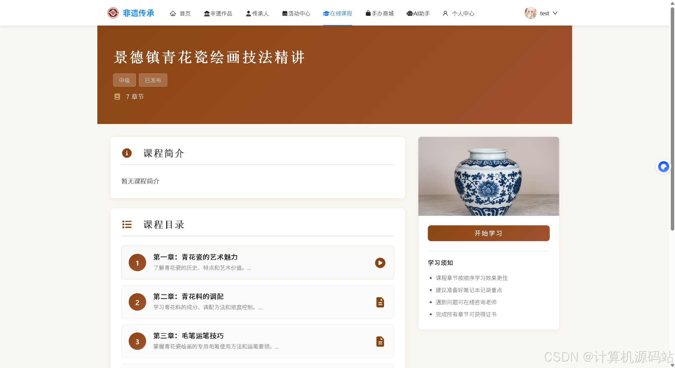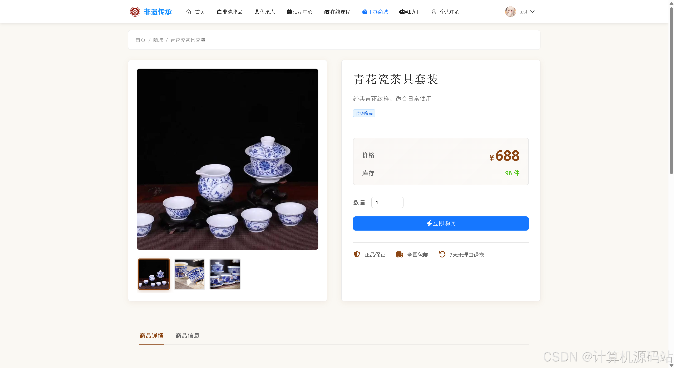 - 非遗作品管理:非遗作品增删改查、作品发布、作品下架