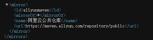 通过maven仓库地址来找到setting文件,在mirrors节点上,添加内容如下