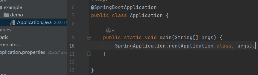 在Application里面有 SpringBootApplication注解,这个是启动类注解,点击启动的main方法就可以运行SpringBoot 了