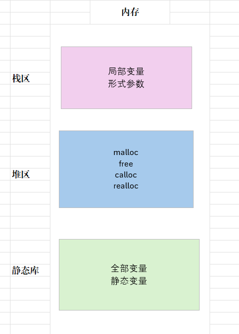 而动态申请的内存空间统一都在内存的堆区中(需要手动释放),我们的内存中有栈区,堆区,静态库