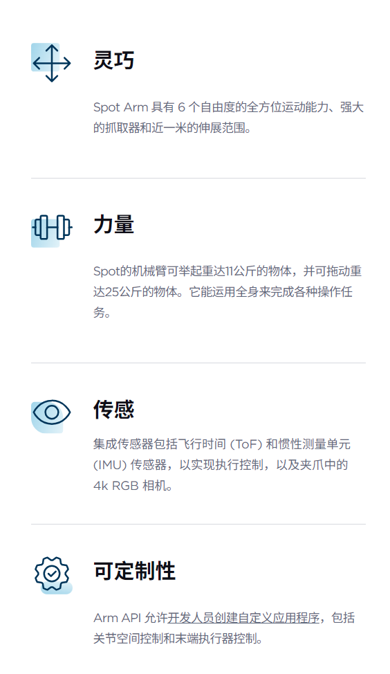 Spot Arm 为研究人员和开发人员提供了创新的新维度。这款移动机器人手臂开箱即可实现精准且可重复的动作,无论从字面意义还是象征意义上来说,都为新的研究应用打开了大门。