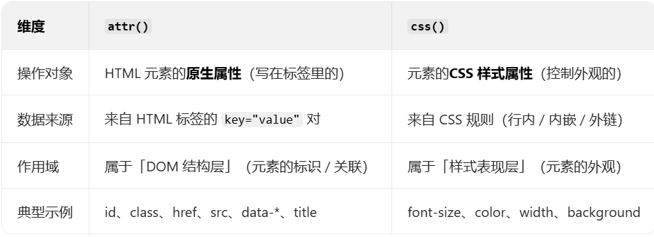 attr() 和 css() 的区别