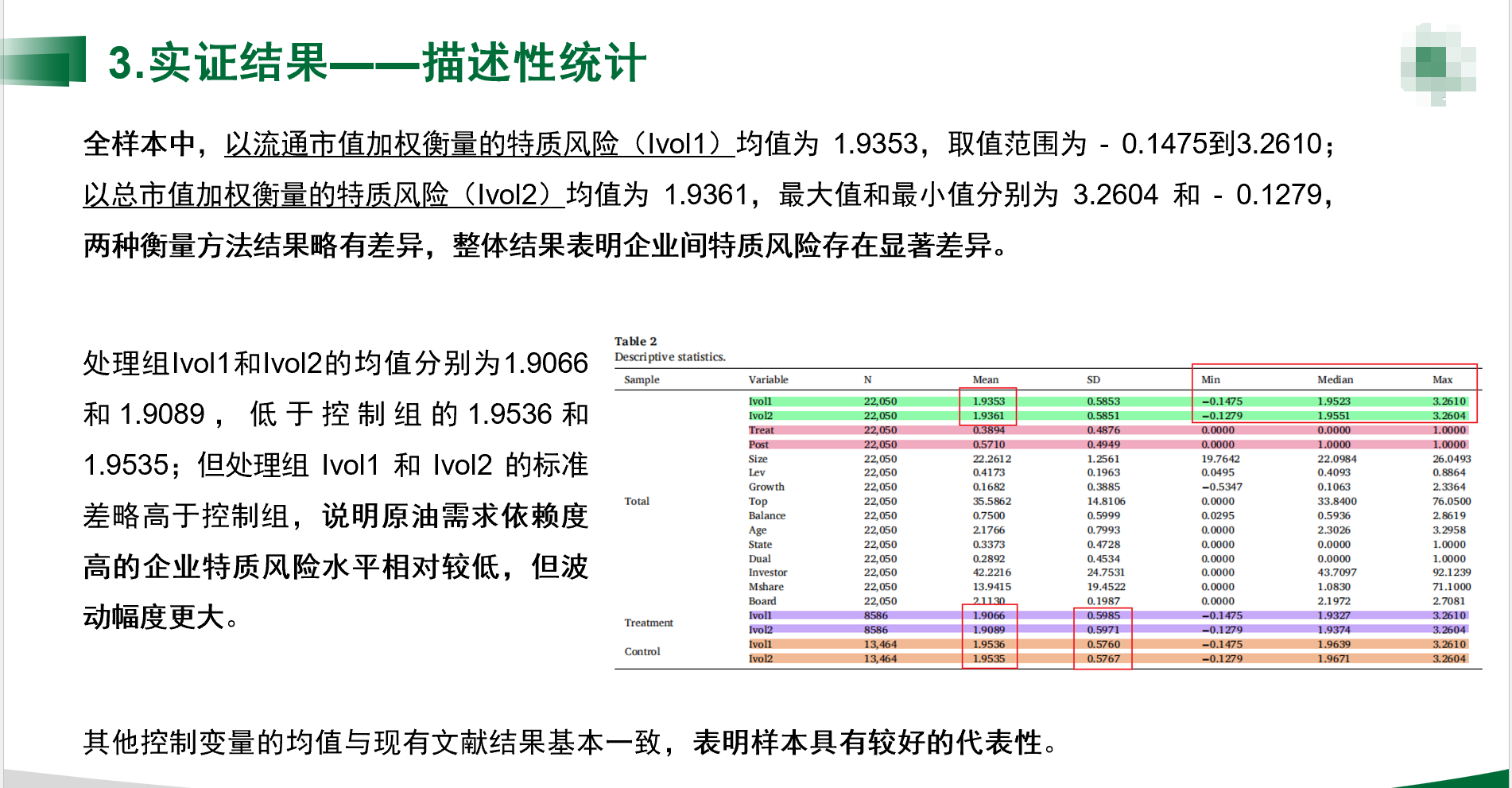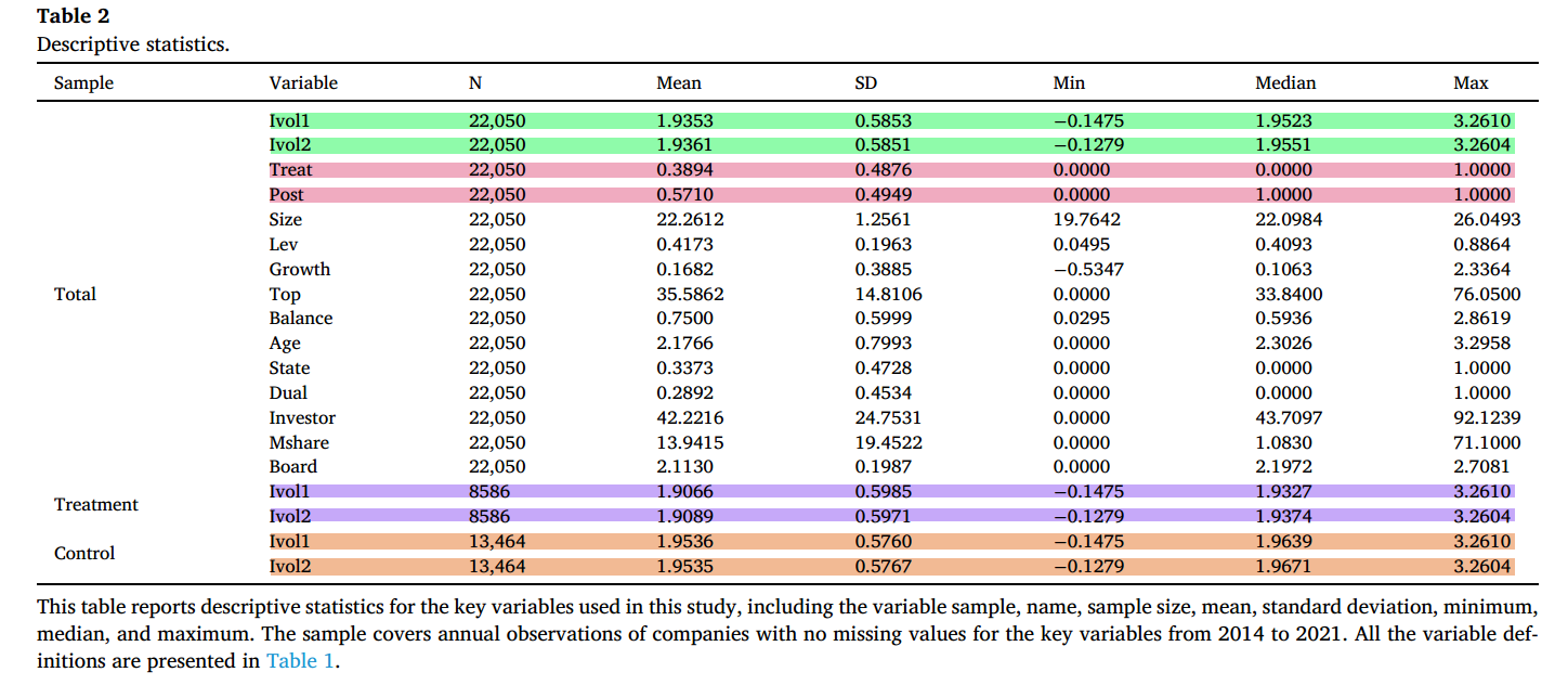 然而,treatment组的Ivol1和Ivol2的标准差分别为0.5985和0.5971,略高于对照组的0.5760和0.5767。