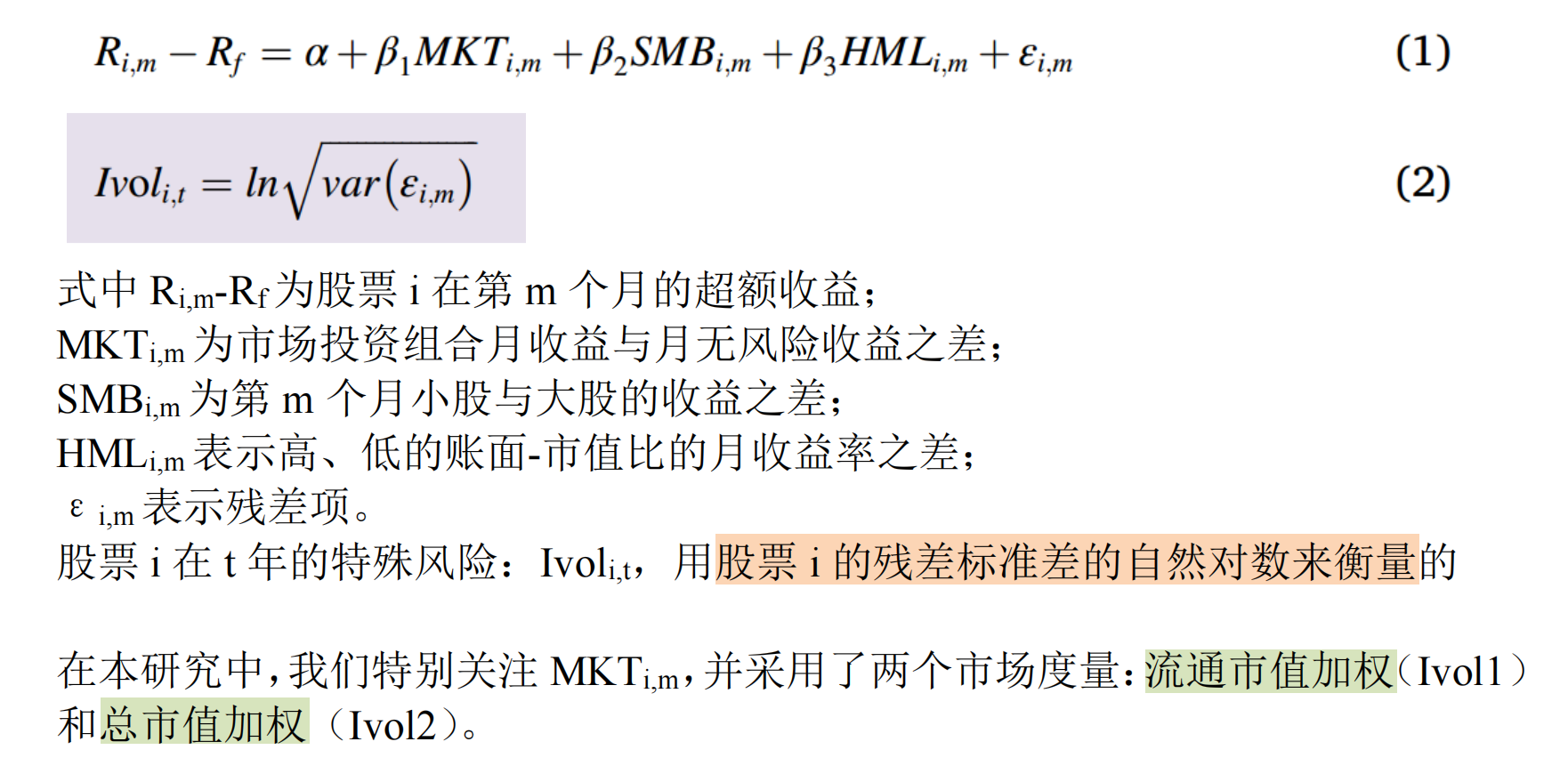 通过流通市值加权法测量的全样本的特质风险平均值(Ivol1)为1.9353,在-0.1475和3.2610之间。