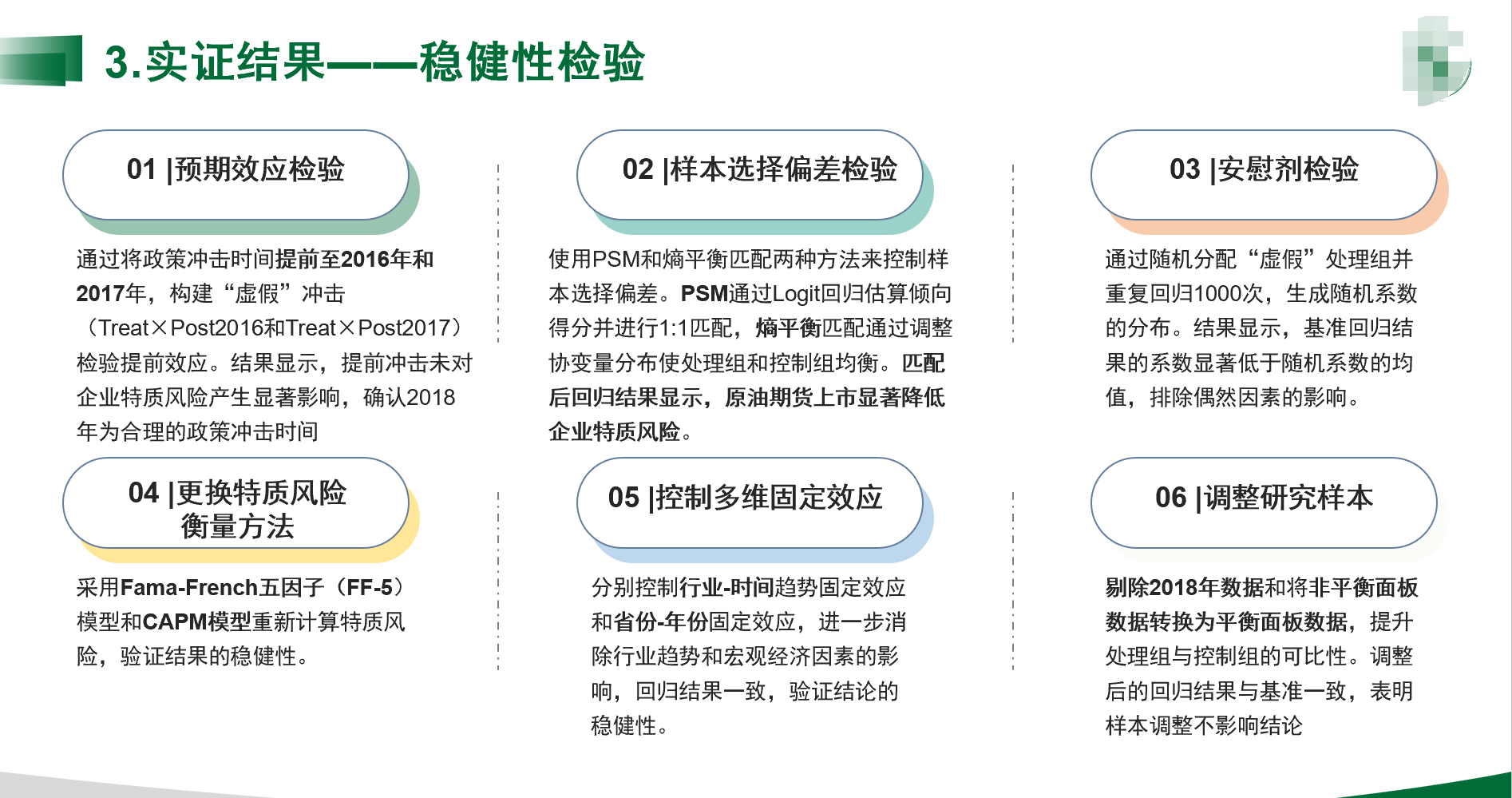 基于2014-2021年样本的实证结果表明,中国COF的推出显著降低了能源依赖型企业的特质风险(significantly reduces idiosyncratic risk),即使经过一系列稳健性检验,这一结论仍然显著。