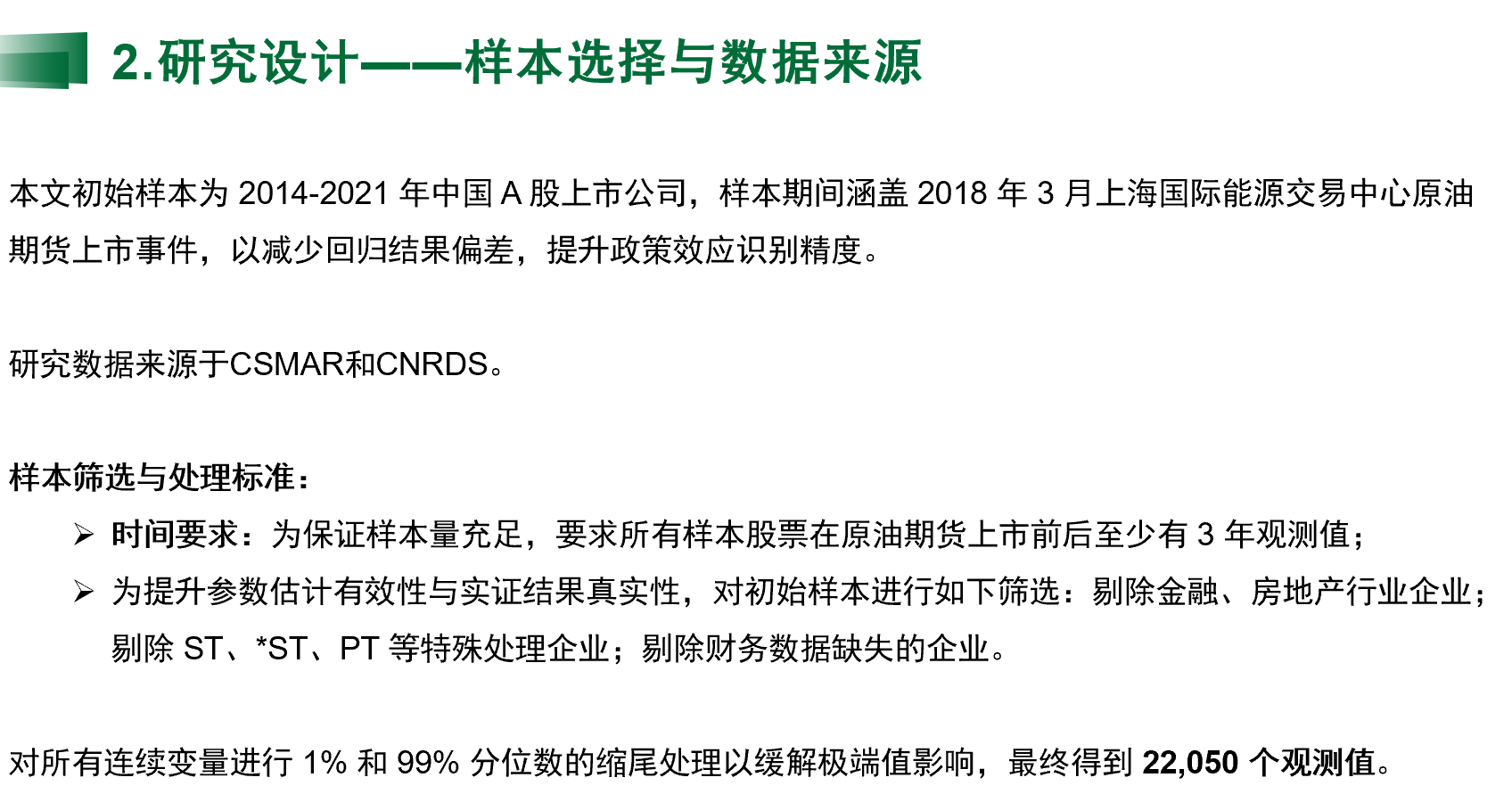 本研究的初始样本包括2014-2021年的中国A股上市公司。样本周期与2018年3月在上海国际能源交易所推出的中国原油期货一致。这种方法的目的是尽量减少回归结果的潜在偏差,提高对政策效果的识别。