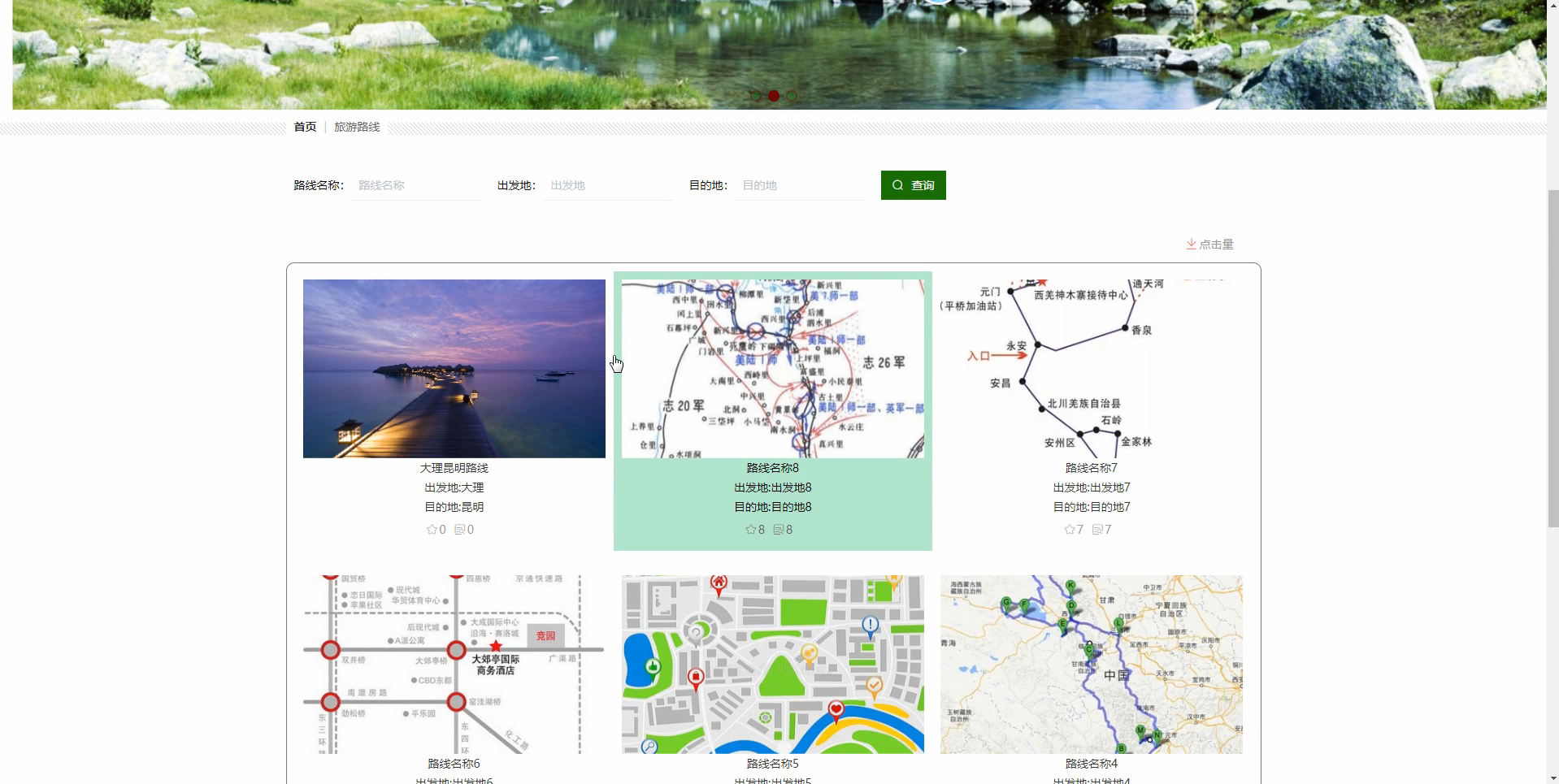 - 旅游路线管理模块:景区用户可设计并发布旅游路线,包括路线名称、路线简介、途经景点、行程安排、路线价格等;旅客用户可浏览、查询旅游路线,了解路线详情。