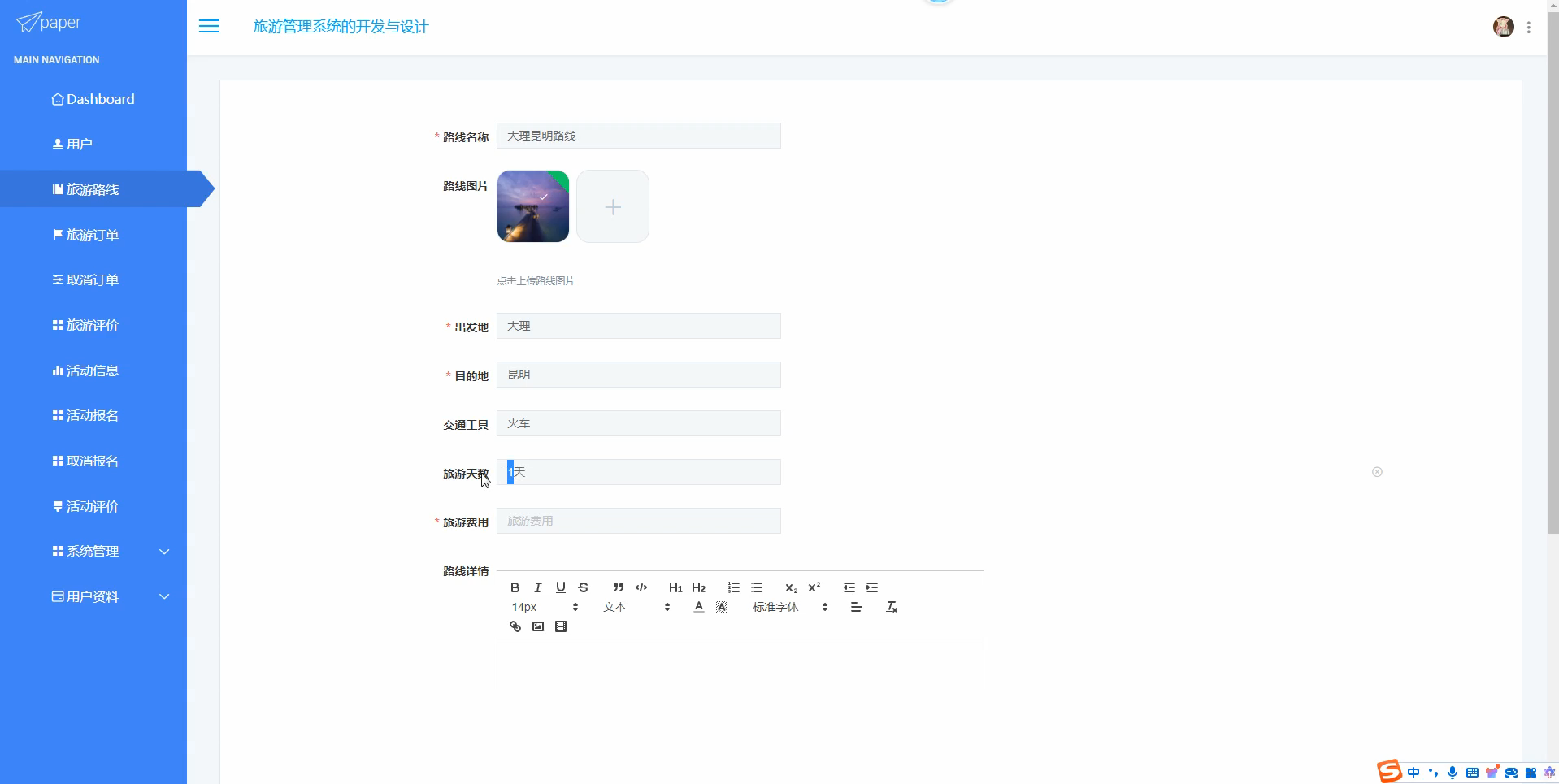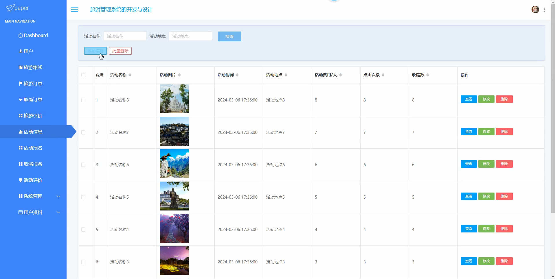- 完成地区信息、旅游景点、旅游路线、酒店信息等旅游资源的系统化管理,实现信息的快速查询、添加、修改与删除。