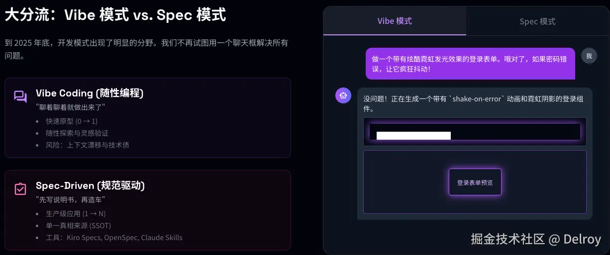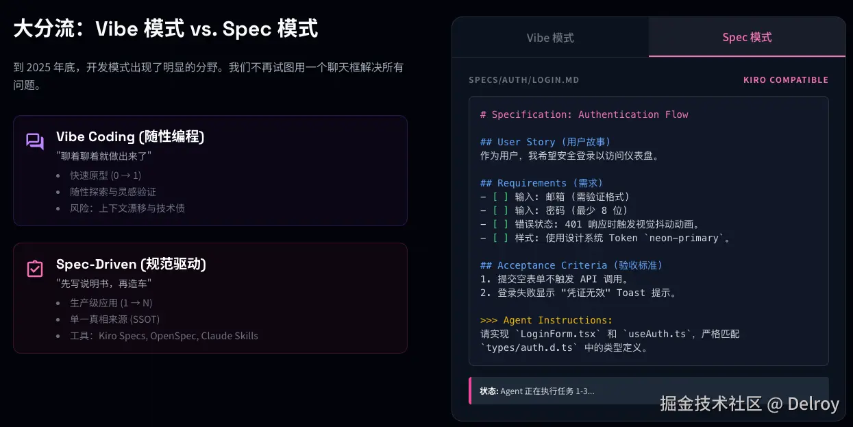 Vibe vs Spec 的典型对比