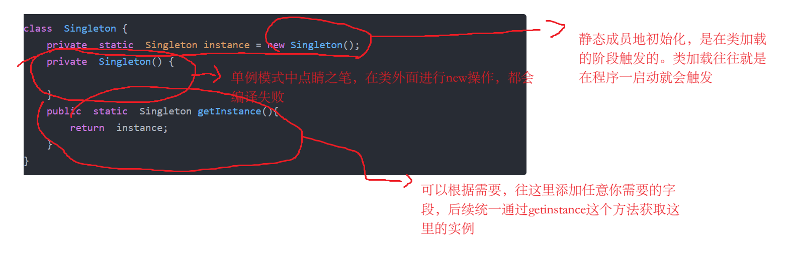 当多线程首次调用getinstance,大家可能都发现instance为null,于是又继续往下执行来竞争锁,其中竞争成功的线程,再完成创建实例的操作。