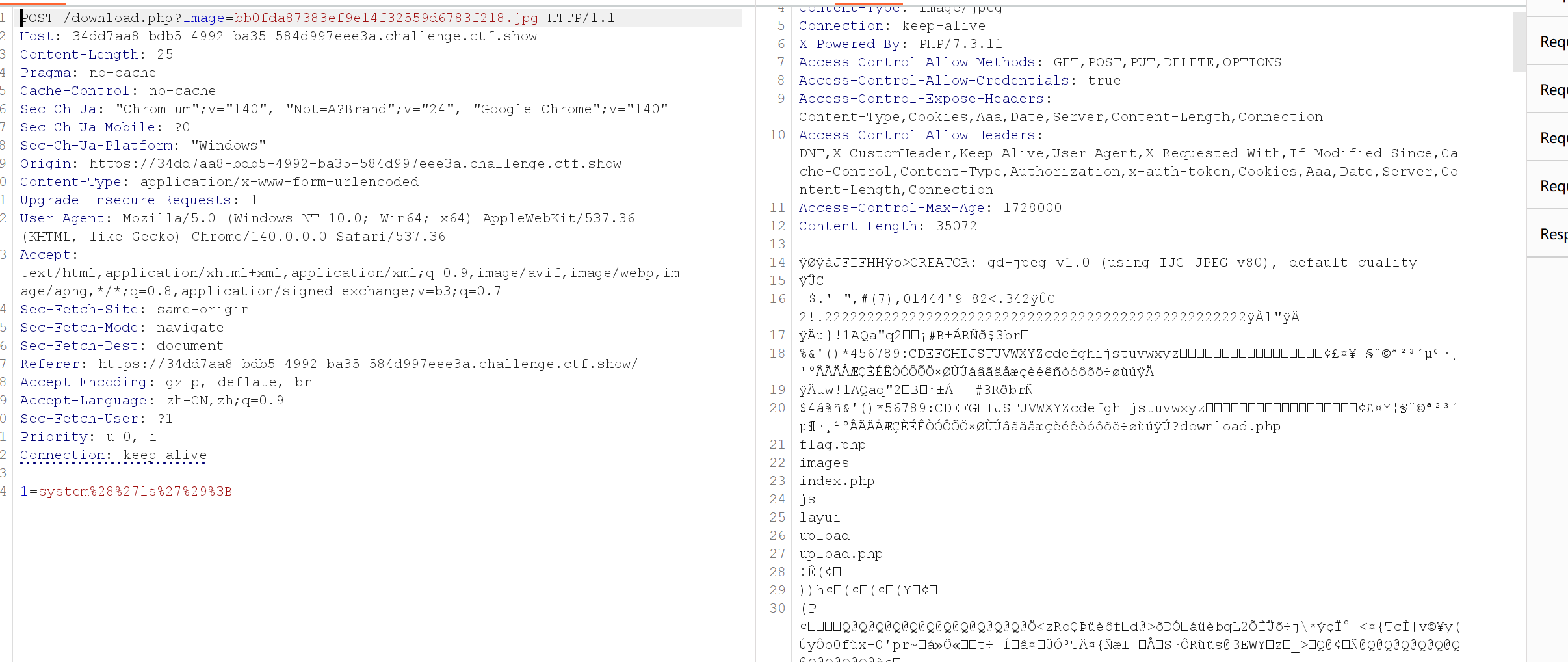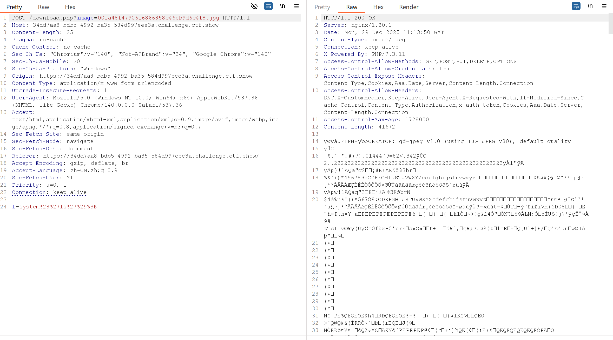 我们跑脚本用的渲染过的图片生成的图片马再传到服务器虽然结构又变了,但是payload 已经被构造为:在服务器这套 JPEG 编码下,不会被破坏的 Scan 数据 再洗一次,行为和本地预演的一模一样。【把服务器的 JPEG 行为变成你可控、可预测的变量】这样再进行图片上传时我们的payload依然还在,即传马成功。