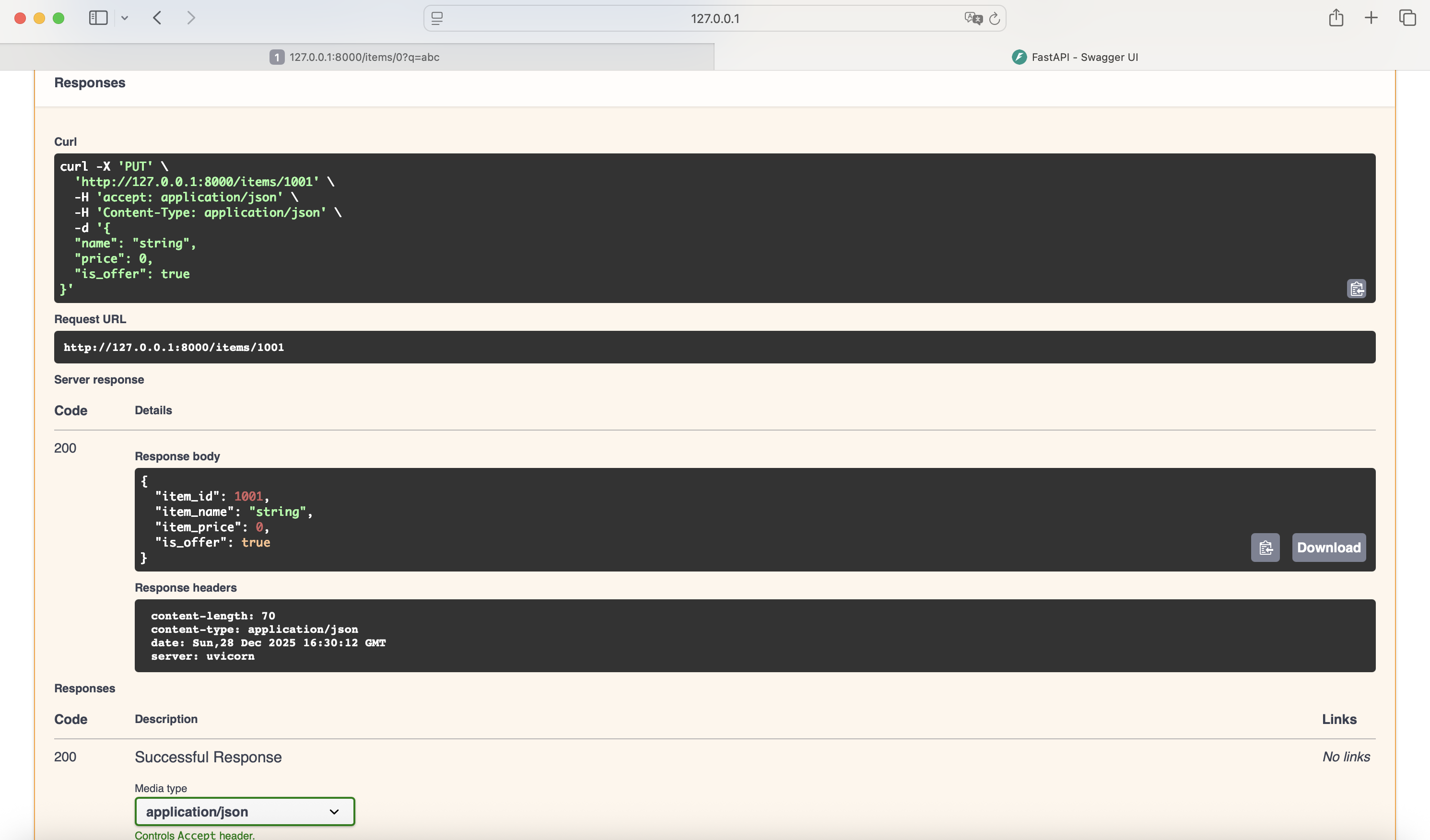 访问http://127.0.0.1:8000/docs → PUT /items/{item_id}接口 → "Try it out"